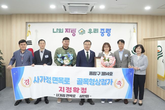 중랑구(구청장 류경기)는 4월 15일 면목7동 사가정면목로를 신규 골목형상점가로 지정하고 지정서 수여식을 열었다. 코로나19 이후 지속된 고물가·고금리와 온라인 소비 확대, 중동 정세 불안 등으로 영세 소상공인의 경영 부담이 가중되는 상황에서 구는 골목형상점가 발굴·지정을 통해 상권 경쟁력 강화에 나서고 있다. 이번 14호 지정으로 중랑구는 서울시 자치구 가운데 골목형상점가 지정 수 공동 2위에 올랐다.