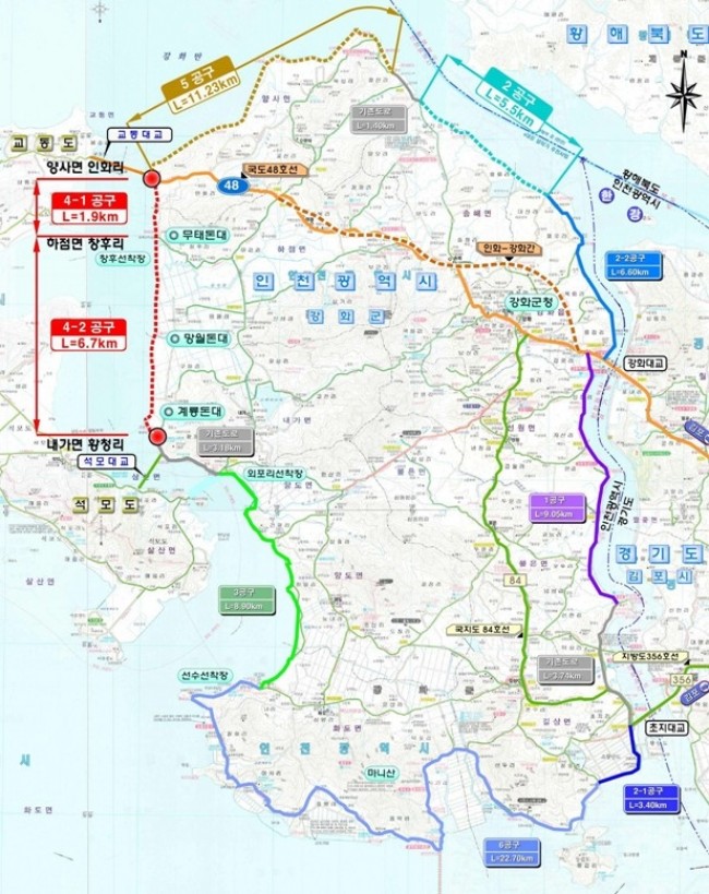 이에 강화군은 이달부터 인천광역시와 긴밀히 협업해 자체 예산을 투입, '내가면 황청리∼하점면 창후리' 구간에 대한 사전 타당성 조사 용역을 선제적으로 추진하며 사업 정상화의 물꼬를 튼다.