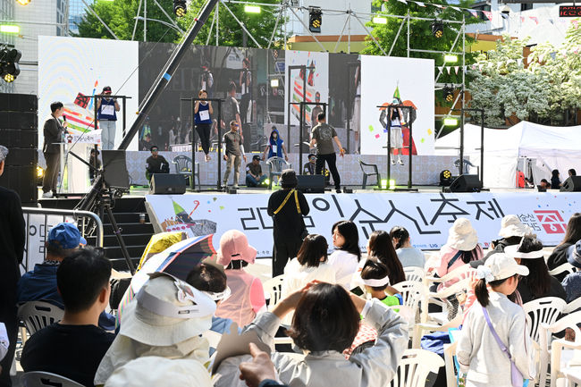 '순신 PLAY' 체험존에서는 전통놀이와 북아트부터 VR 승마체험, 로봇 체험, 로블록스 생일파티까지 세대를 아우르는 프로그램이 가족 단위 방문객들의 발길을 붙잡았다. 갓을 쓴 로봇의 퍼포먼스는 외국인 관광객들의 눈길도 단번에 사로잡았다.